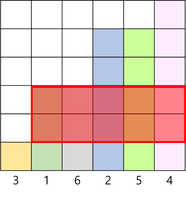 5. 2번 음식을 다먹는데 걸리는 시간은 아래 그림과 같이 2 (2번 시간 - 6번 시간) × 3 (남은 음식 수) = 6 이다. 그런데 남은 시간 K는 4이므로 6번을 다 먹을 수 없다.