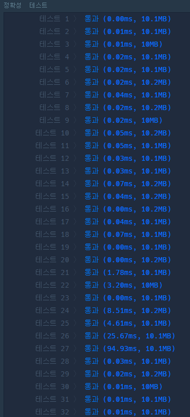 [정확성 통과, 효율성 실패 풀이] - 본인 풀이
