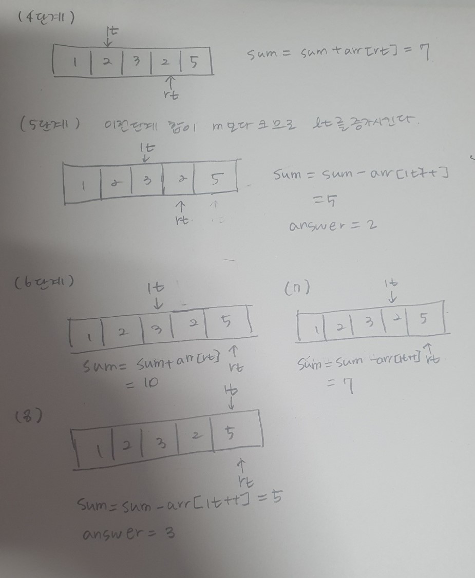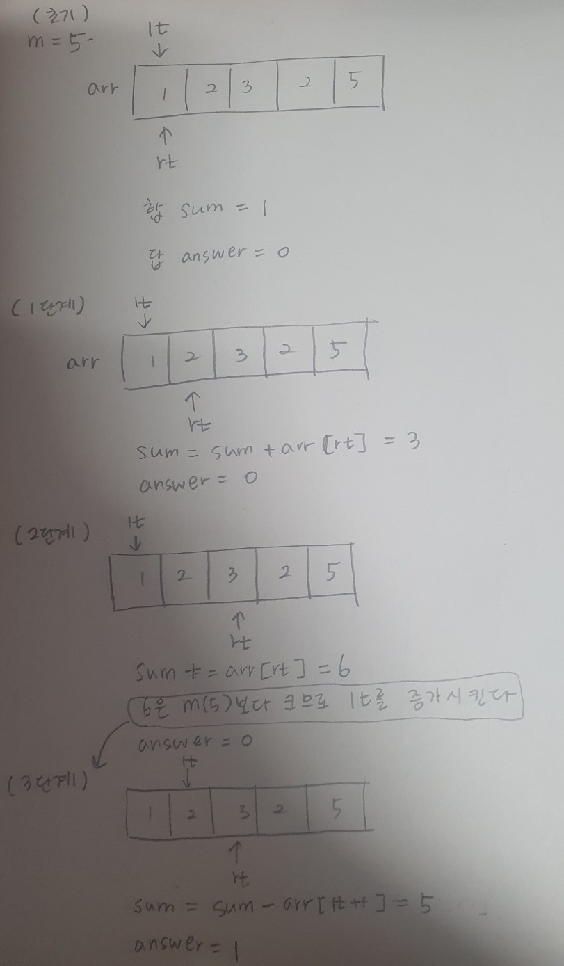 어떤 숫자들의 리스트가 주어질 때, 해당 리스트의 연속 수열의 합이 특정 값(m)을 가지는 경우의