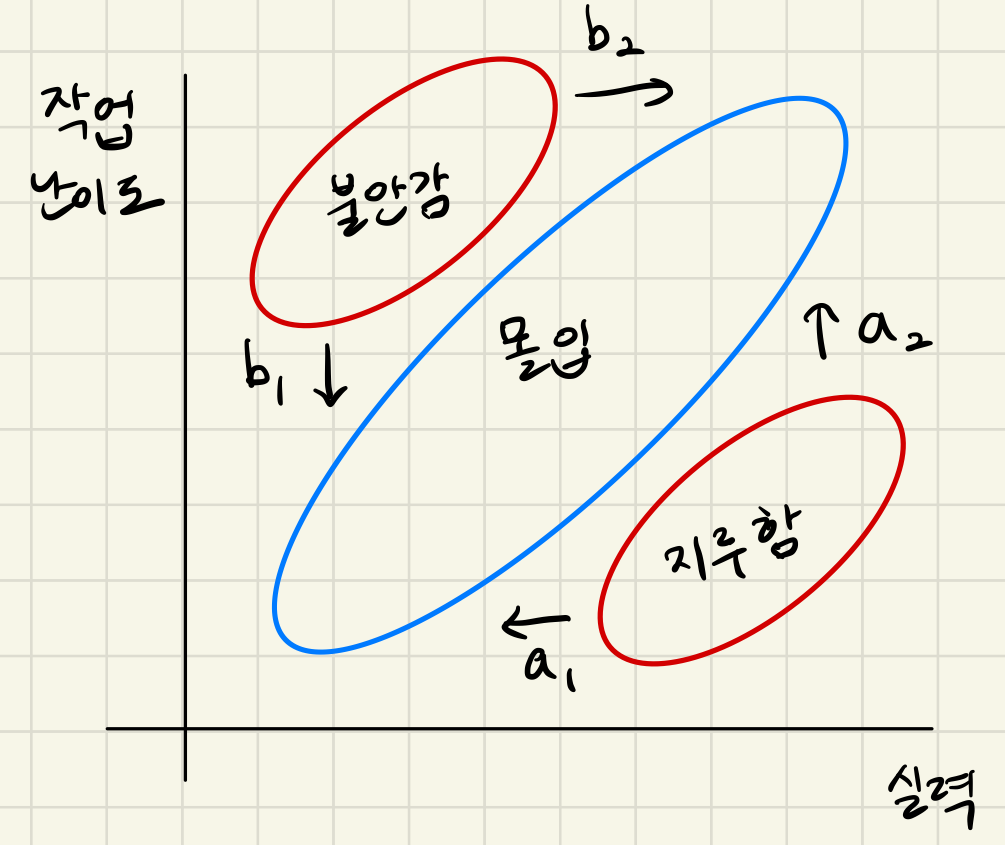 그러나 실력에 비해 작업 난이도가 높아 불안감을 또는 실력에 비해 작업 난이도가 낮아 지루함을 느끼게 된다.