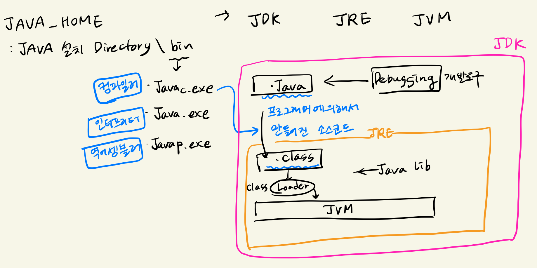 - JRE + 개발에 필요한 실행 파일 (javac.exe 등..)