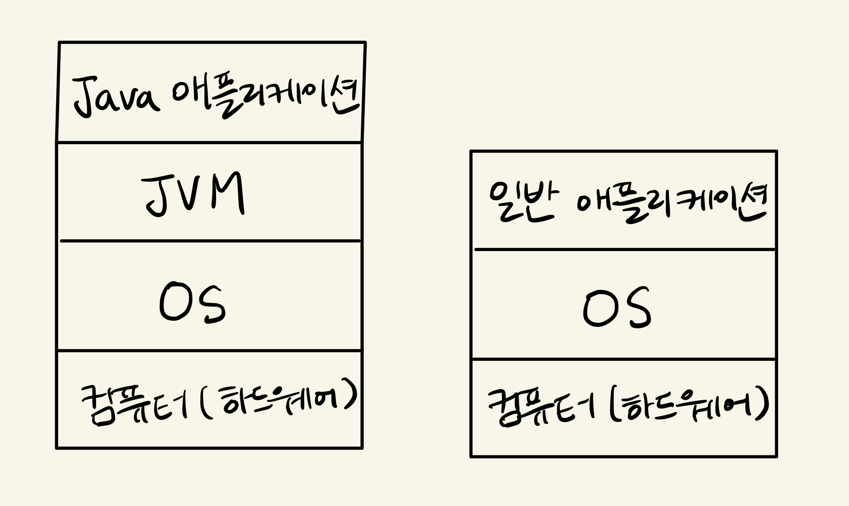 - 자바로 작성된 애플리케이션은 모두 JVM에서만 실행되기 때문에, 자바 애플리케이션을 실행하기 위해서는 반드시 JVM이 필요